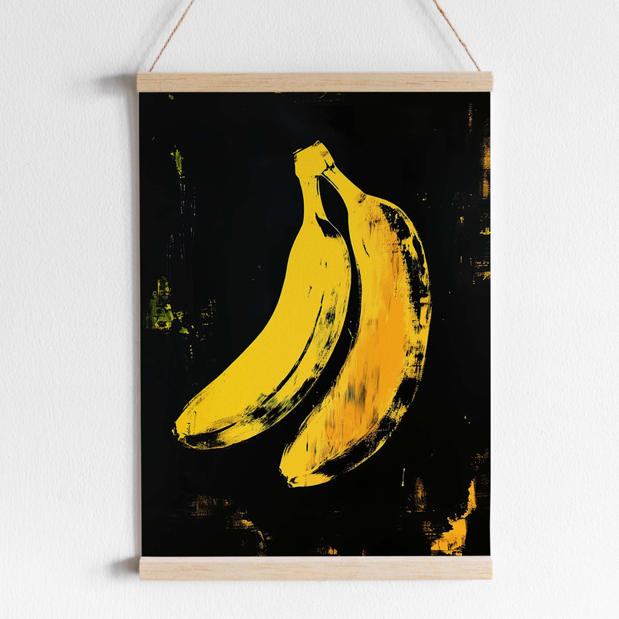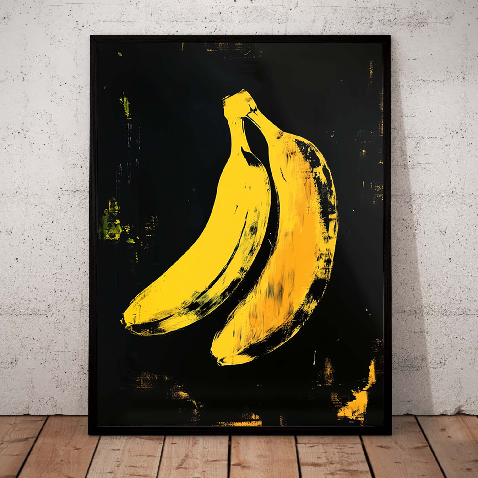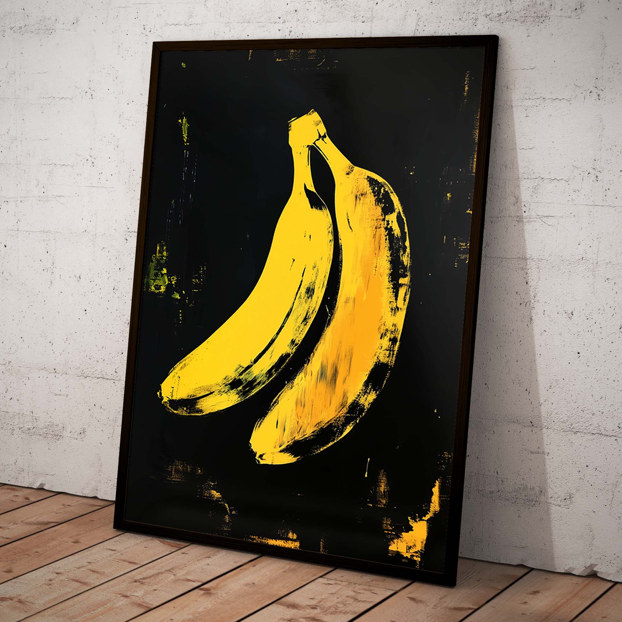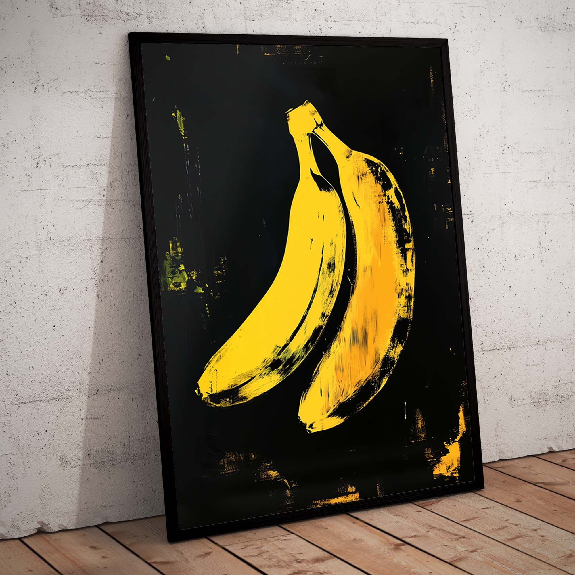 Denne plakat fremviser en ikonisk gul banan skabt med avanceret AI-teknologi, der hylder popkunstens udtryksfulde og farverige æstetik. Designet leger med kontraster og enkle former, der fremhæver bananens karakteristiske silhuet, samtidig med at det tilfører en moderne og frisk kant. Perfekt som et statement-piece i dit hjem eller kontor, denne plakat emmer af kreativitet og humor, og bringer en dynamisk energi til enhver væg.