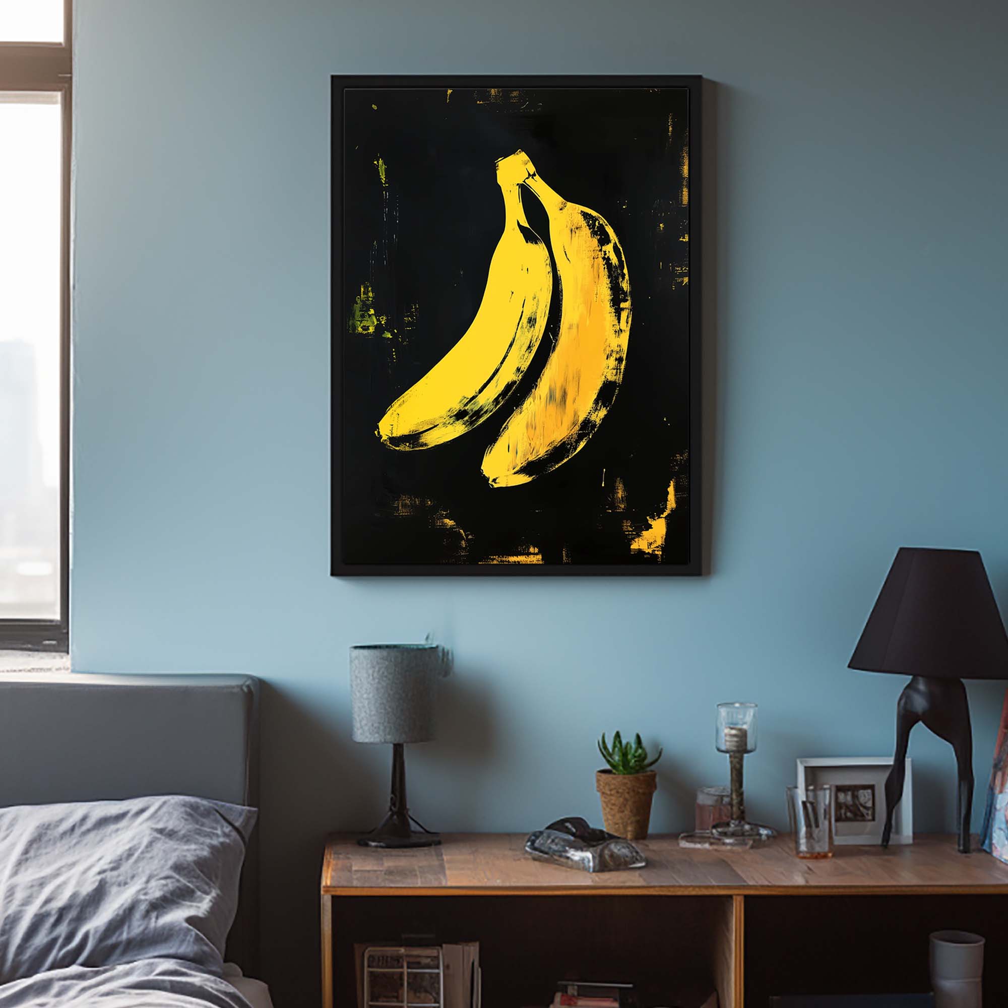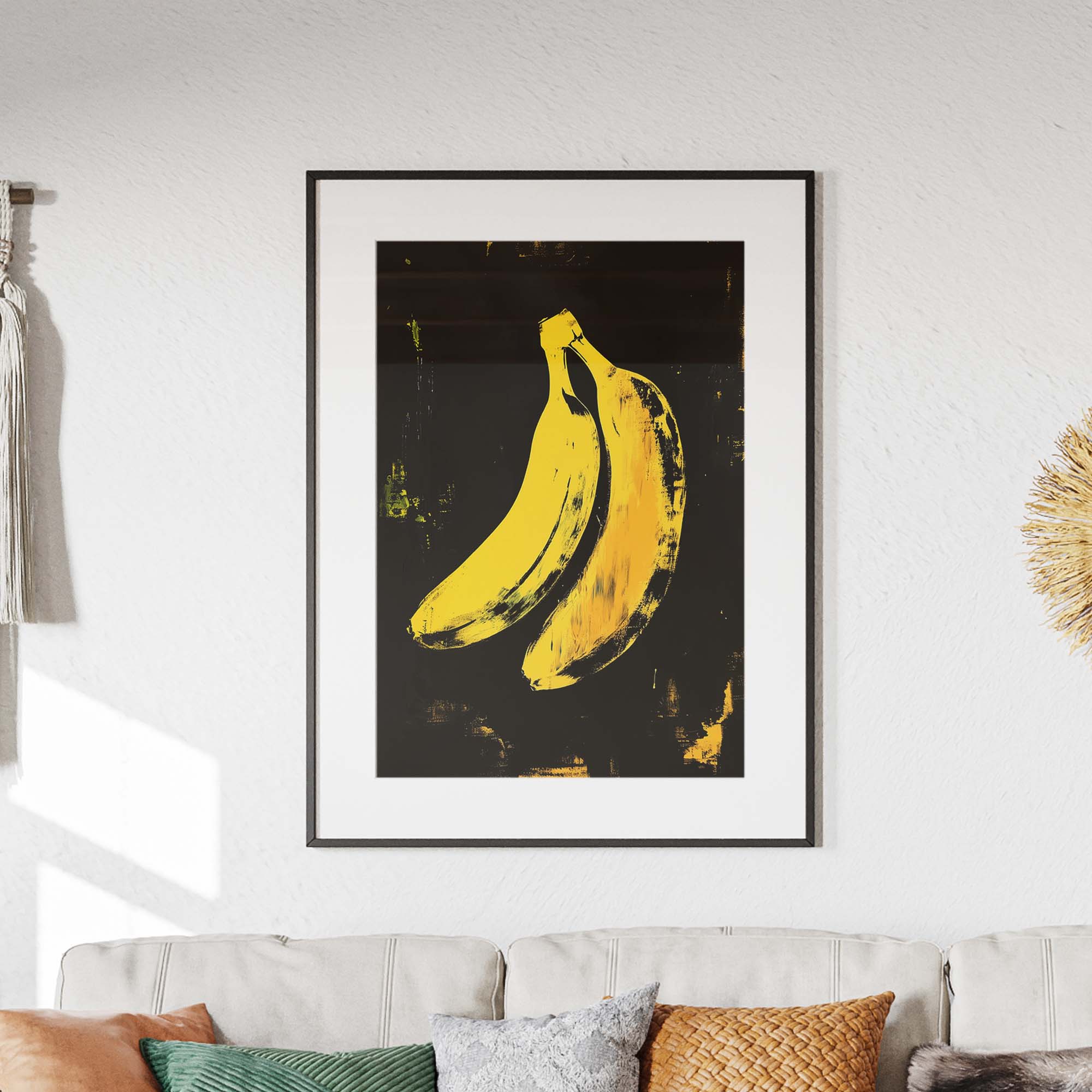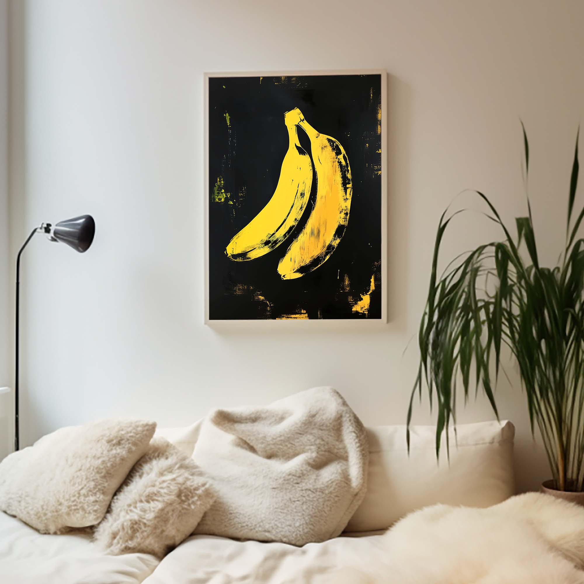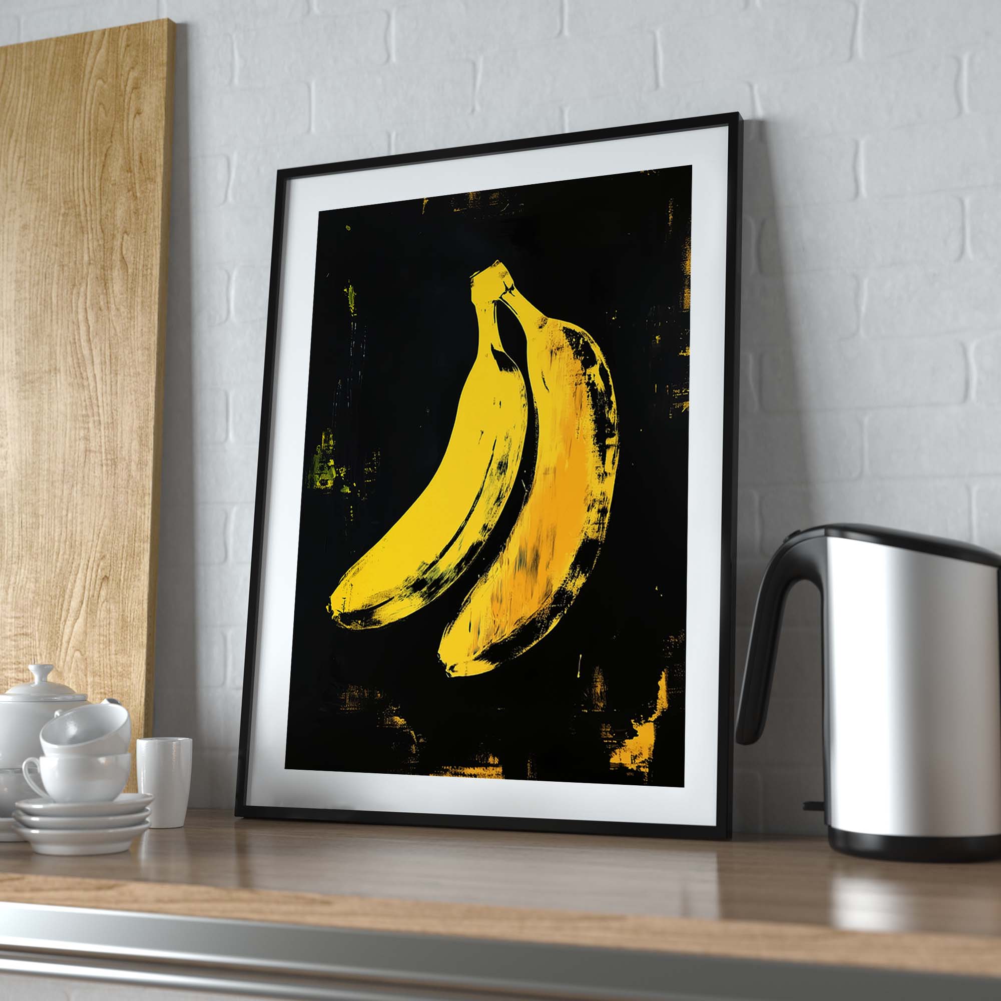 Denne plakat fremviser en ikonisk gul banan skabt med avanceret AI-teknologi, der hylder popkunstens udtryksfulde og farverige æstetik. Designet leger med kontraster og enkle former, der fremhæver bananens karakteristiske silhuet, samtidig med at det tilfører en moderne og frisk kant. Perfekt som et statement-piece i dit hjem eller kontor, denne plakat emmer af kreativitet og humor, og bringer en dynamisk energi til enhver væg.