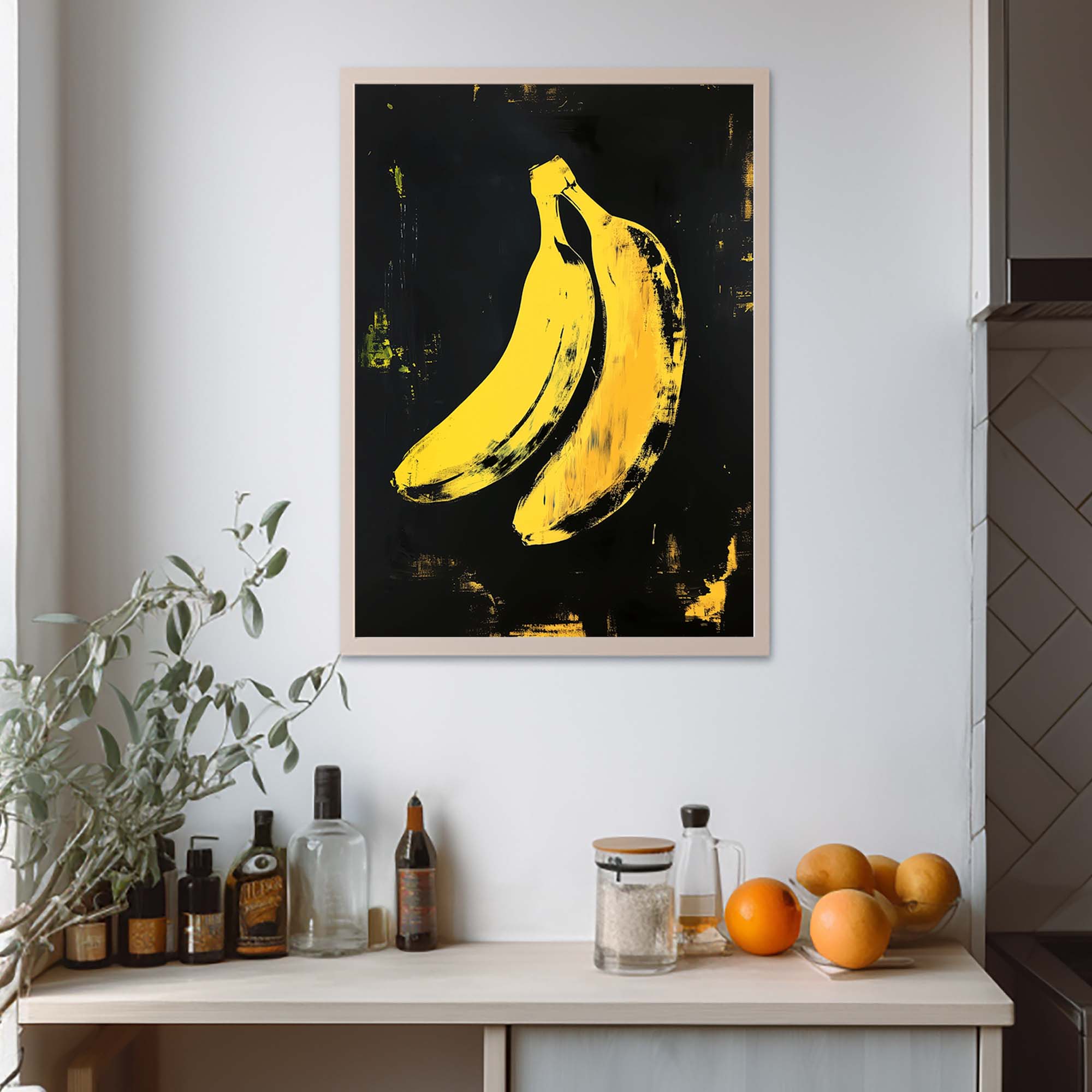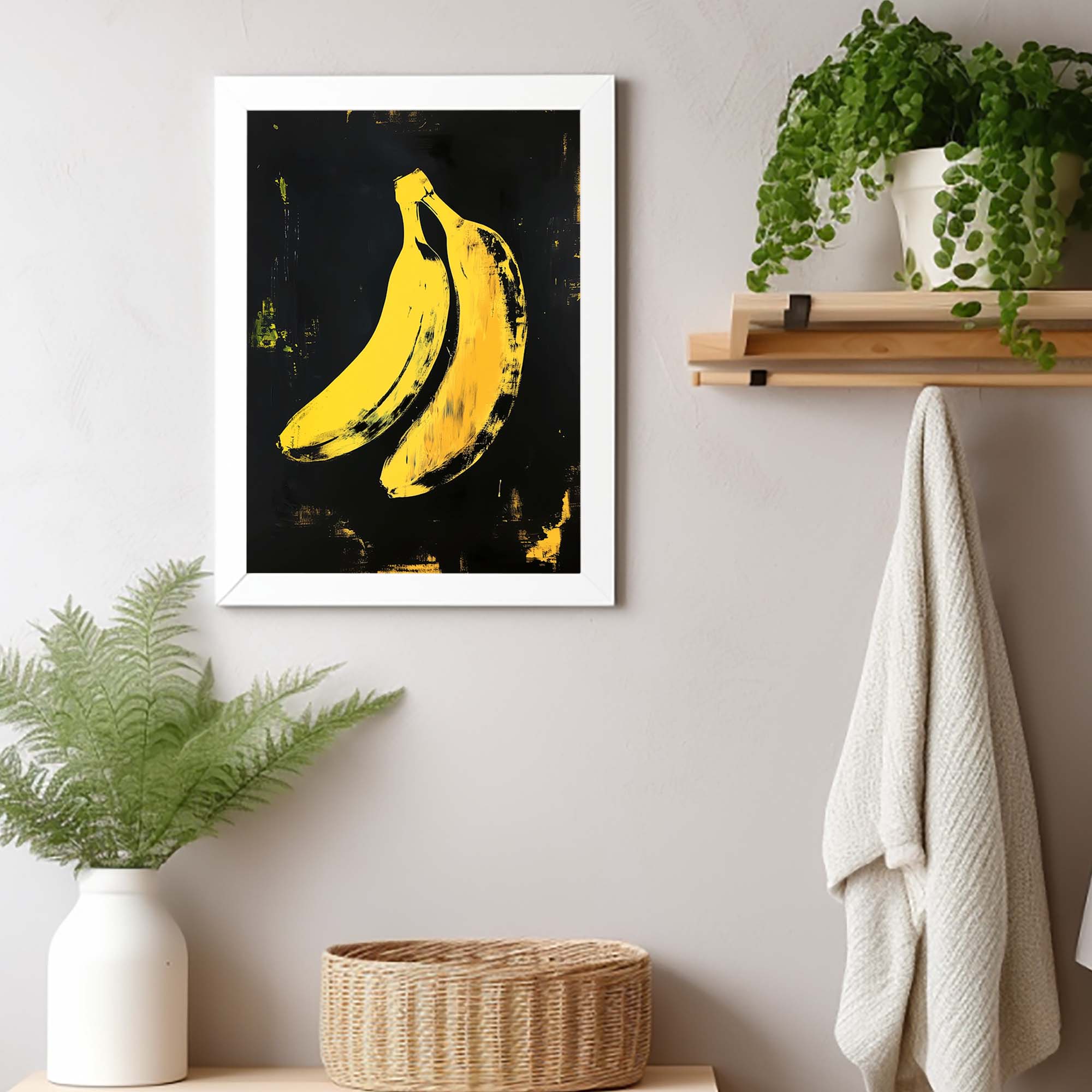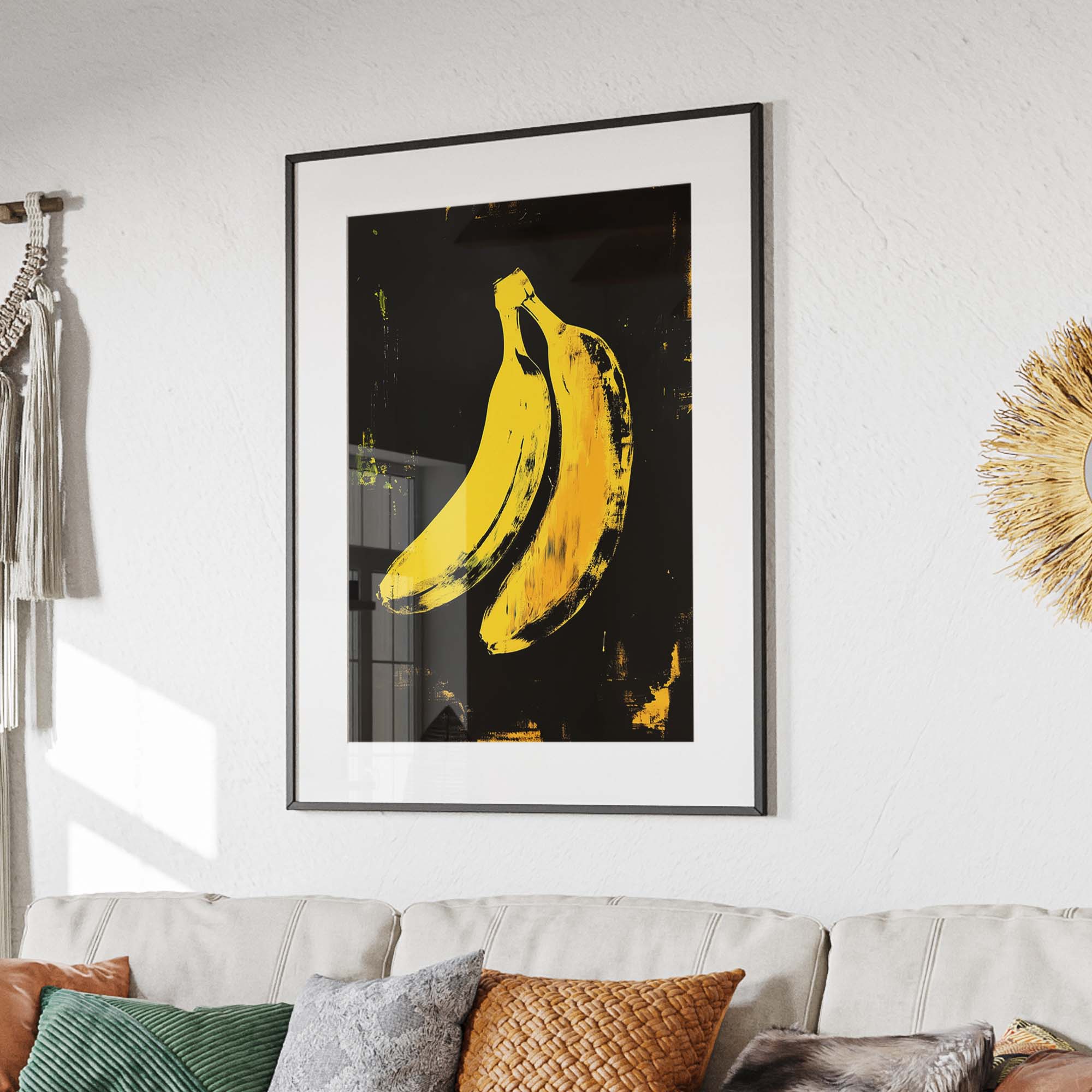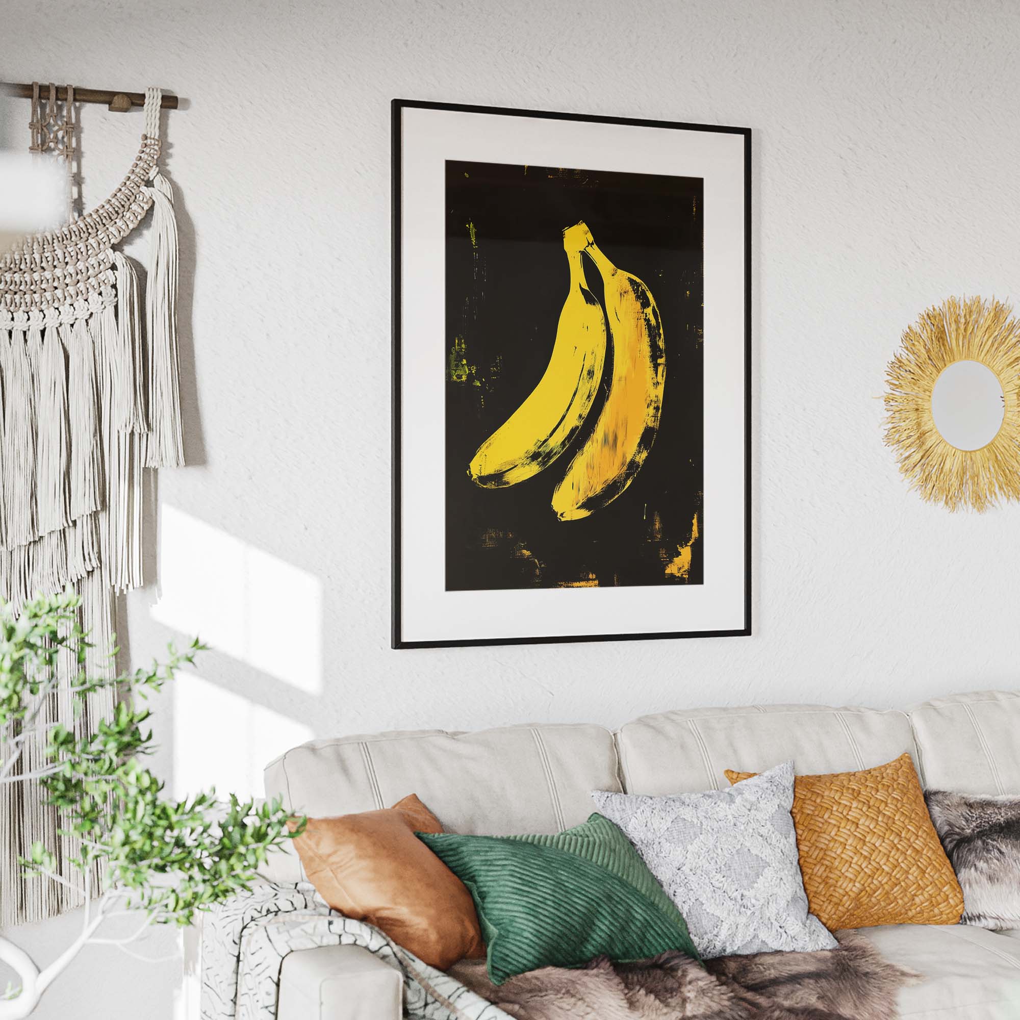 Denne plakat fremviser en ikonisk gul banan skabt med avanceret AI-teknologi, der hylder popkunstens udtryksfulde og farverige æstetik. Designet leger med kontraster og enkle former, der fremhæver bananens karakteristiske silhuet, samtidig med at det tilfører en moderne og frisk kant. Perfekt som et statement-piece i dit hjem eller kontor, denne plakat emmer af kreativitet og humor, og bringer en dynamisk energi til enhver væg.